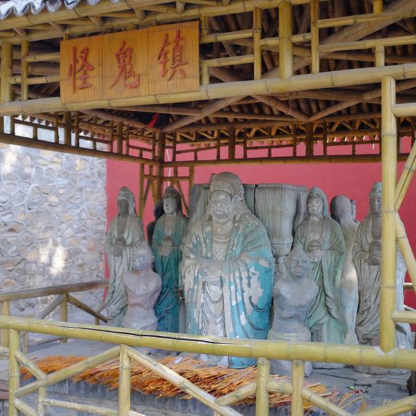 第二重天王殿,正中供奉弥勒,左右分立四大天王。总觉得在寺庙里相对于大都长相类似的佛祖菩萨们而言,服饰佩戴兵刃各异的四大天王/哼哈二将等更加具有设计感也更耐看。