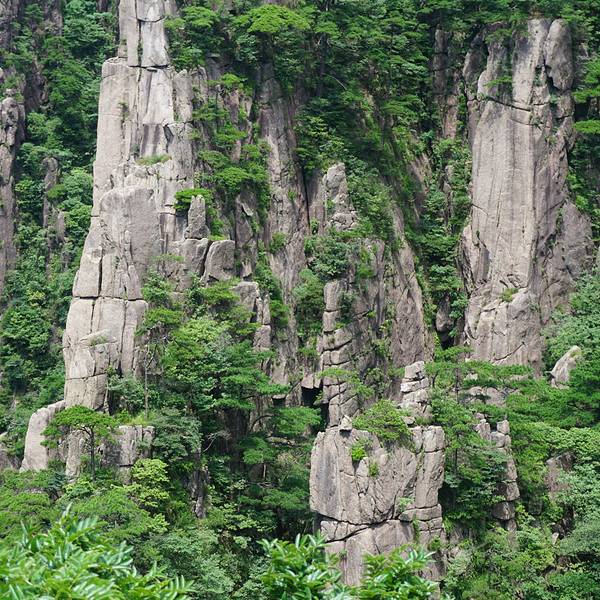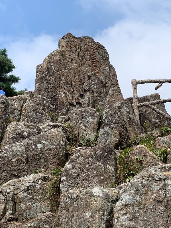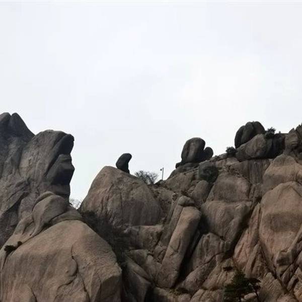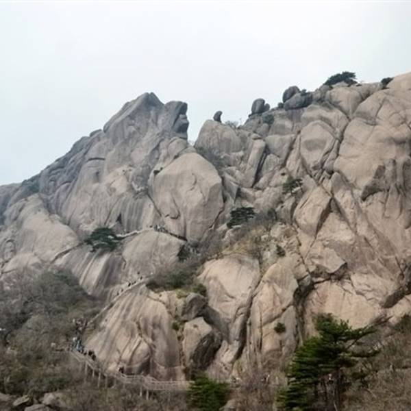 在始信峰的旁边有另外2座山峰在左右陪伴着,一个是石笋峰,一个上升峰,石笋峰主要是有许多奇形怪状的岩石,都是天然形成的,“黄山第一奇观”“石笋矼就在这里。