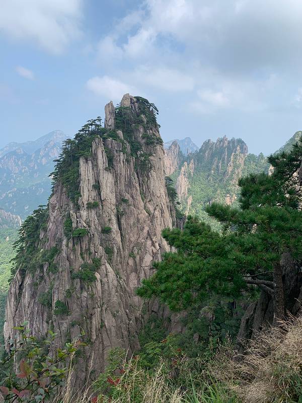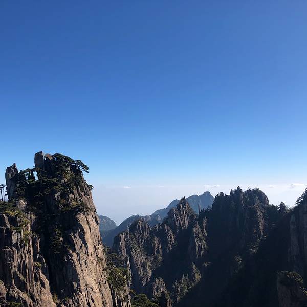 三面临空,可以感受黄山的险峻,周围还有很多名松可看。