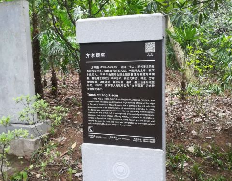 方孝孺墓位于江苏省南京市雨花台风景区内,是明代著名的忠臣方孝孺之墓方孝孺墓位于江苏省南京市雨花台风景区内,是明代著名的忠臣方孝孺之墓。方孝孺墓建于明代末期,历代重修又被毁,现墓是1999年重建的。
