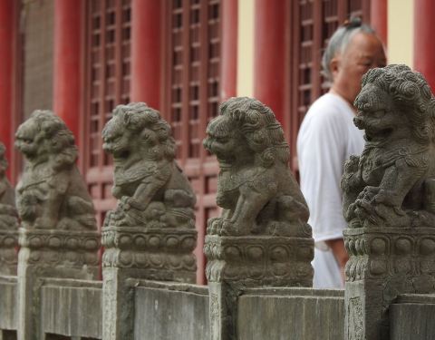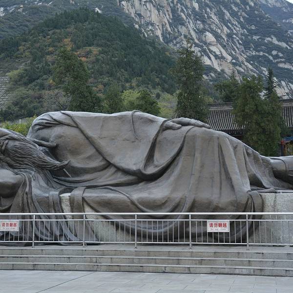 金骆驼 而白天的话是必须从这里看看的,也许我去的时候正好是中秋过后,国庆之前的这个淡季,所以道观里面的...作为徒步爬上华山的第一站,玉泉院是个不得不参观的一站,从华山北站打车约20块钱。玉泉院是一个免费的道观,这在偌大的华山来说,免费二字难能可贵啊。首先一步入台阶,在玉泉院前面的广场就是一位侧卧假寐的老...作为徒步爬上华山的第一站,玉泉院是个不得不参观的一站,从华山北站打车约20块钱。玉泉院是一个免费的道观,这在偌大的华山来说,免费二字难能可贵啊。首先一步入台阶,在玉泉院前面的广场就是一位侧卧假寐的老人,是陈抟老祖?忘了!因为路过这里的时候有三四个中年妇女一直拉着让拍快照,所以就快速走开了。玉泉院如果是夜爬的话,就需要绕开这个道观。而白天的话是必须从这里看看的,也许我去的时候正好是中秋过后,国庆之前的这个淡季,所以道观里面的游客并不多,非常的安静,除了一些零星的说话声音,就是书上的鸟叫。玉泉院面积不是很大,但是建筑规整而恢弘。进入道观之后,真的会是一个大大的惊喜,如果不是处处的提醒,我会真的会以为我进入了某个江南园林的园子里面,江南的小桥流水,画舫亭台样样都精致可爱!园子里面还有冯玉祥将军等文人墨客的各种墨宝的雕刻。这些雕刻就以自然而随意的姿态散落在园子里面,全部看完大约需要十几分钟的样子。园子中的小湖中间有一个石头的画舫精致的很。进入道院的大殿门口,台阶两边各矗立了一只麒麟,古朴大气的龙头马身镇守着道观两边。在大殿的左手边有一个小门,边上还写着由此进入登山。很窄很小的门,不注意容易忽略掉哦。玉泉院的回廊曲折,有一种江南大户人家的后花园的既视感。在这里还偶遇了两位道长,飘然的样子很仙哦。据说这个回廊的窗户有72种造型,因为时间有限就没有一一数过去,如果有时间的话,大家可以去数数看!