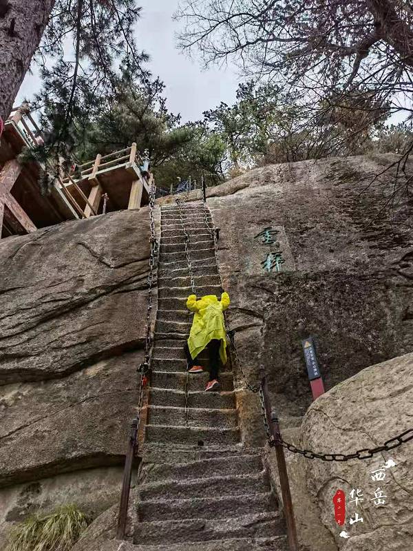 运气不错,在快到饭店的时候,下起雨来。这个地方非常考验臂力,我尝试了好几次,没有爬上去……从西安坐高铁到华山大约20分钟,车次也特别多,出了高铁站有免费公交车到华山游客中心,要是想从玉泉院徒步登山,可以花20块钱打个车。