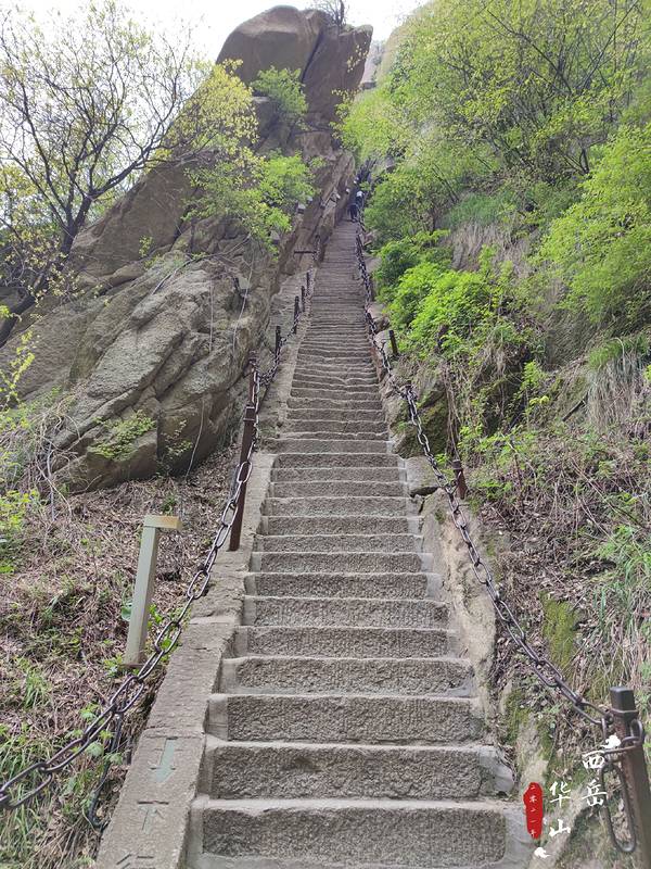 从北峰向上就是苍龙岭了,共计500多级台阶,很考验体力。