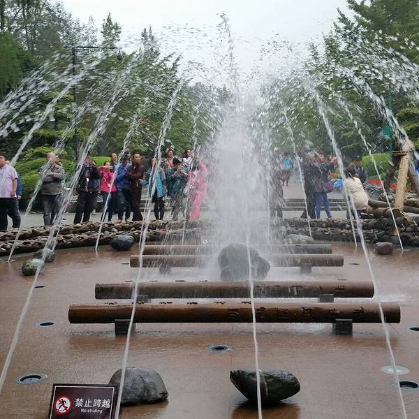沿南门往里走,首先映入眼帘的是景物之一“卧铁”。他们一起组成了“卧铁”一喷泉景观沿南门往里走,首先映入眼帘的是景物之一“卧铁”。四根铁棒平行地横卧在喷池中心,外面一圈是数十条喷喷出的弧形水柱和池边由三个用木头绑成的三棱锥形的鼎状物,再外一圈儿是三层石堆。他们一起组成了“卧铁”...沿南门往里走,首先映入眼帘的是景物之一“卧铁”。四根铁棒平行地横卧在喷池中心,外面一圈是数十条喷喷出的弧形水柱和池边由三个用木头绑成的三棱锥形的鼎状物,再外一圈儿是三层石堆。他们一起组成了“卧铁”一喷泉景观。