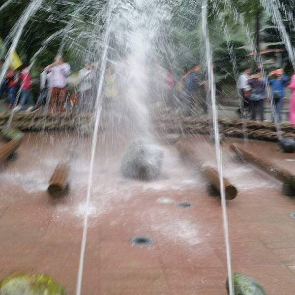 沿南门往里走,首先映入眼帘的是景物之一“卧铁”。四根铁棒平行地横卧在喷池中心,外面一圈是数十条喷喷出的弧形水柱和池边由三个用木头绑成的三棱锥形的鼎状物,再外一圈儿是三层石堆。他们一起组成了“卧铁”...