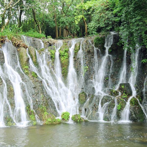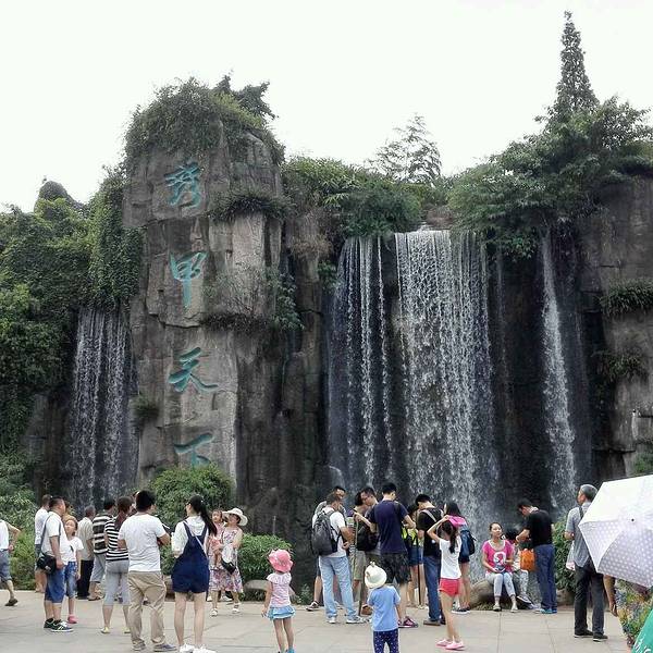 这是一处人为景观,和自然形成的瀑布相比还是有差别,...从峨眉山客运中心(就是乘坐观光车上山的起点)步行5分钟就到了迎宾广场,首先印入眼帘是第一山亭,第一山亭旁边是“秀甲天下”瀑布,是峨眉山新十景之一。