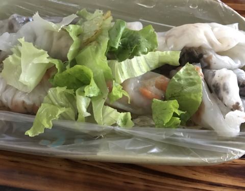 经过改良的越南口味卷粉,现场制作,像水晶般的薄薄的米皮,裹着木耳、猪肉沫等,配上酸甜汁、生菜与薄荷叶…
