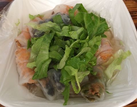 经过改良的越南口味卷粉,现场制作,像水晶般的薄薄的米皮,裹着木耳、猪肉沫等,配上酸甜汁、生菜与薄荷叶,根据口味添加酱料,味道真心好吃。