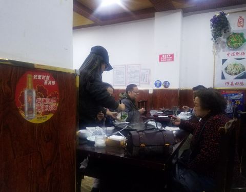 喝了好多汤,两个人点了一斤羊肉和两个素菜,还配了一份萝卜和白菜,一共吃了100块钱。非常的普通