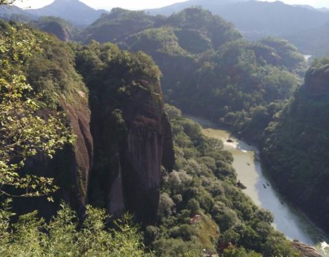 隐屏峰与天游峰对应相见,天游峰看上去海拔更高,隐屏峰山腰有亭子,能从另一个角度欣赏九曲溪的风光。
