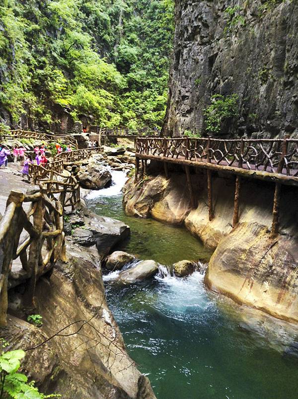 游览方法 :乘电瓶车到“三峡出平湖”的码头,再乘船到达峡谷,向深处步行游览近一小时是缆车站,再乘缆车上到山顶,然后下山约1小时台阶是电梯,再乘直梯下到山底,而后乘电瓶车到景区出入口(或者返过来也可以,强度更大些),少一样也不方便,且不尽兴了。