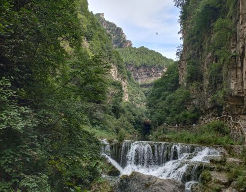 太行山脉巍峨壮观,我们从峡谷下边往上一看,超级的美,国企的水流比较多,而且非常的清澈,空气也比较清新,在这边夏天来特别的凉爽。