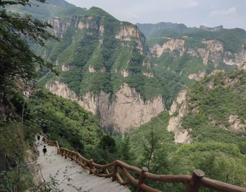 ...边往上一看,超级的美,国企的水流比较多,而且非常的清澈,空气也比较清新,在这边夏天来特别的凉爽太行山脉巍峨壮观,我们从峡谷下边往上一看,超级的美,国企的水流比较多,而且非常的清澈,空气也比较清新,在这边夏天来特别的凉爽。