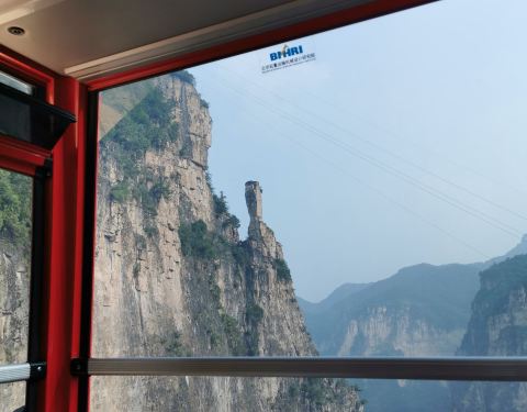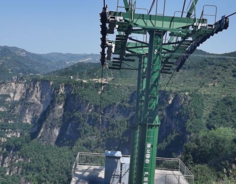 八泉峡的索道设计标新立异,独具匠心,它不是单纯的上下,而是索道雄立四个山头,四上四下,中间还经过一个转换站,环绕众山顶,驰骋山峡间。