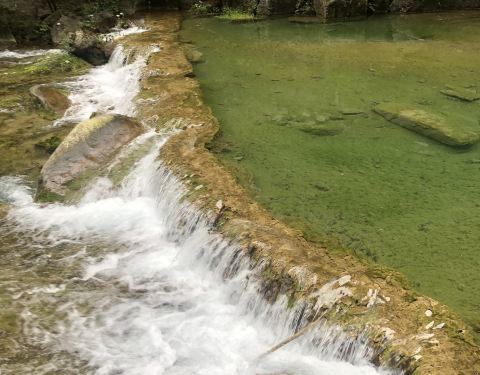...边往上一看,超级的美,国企的水流比较多,而且非常的清澈,空气也比较清新,在这边夏天来特别的凉爽