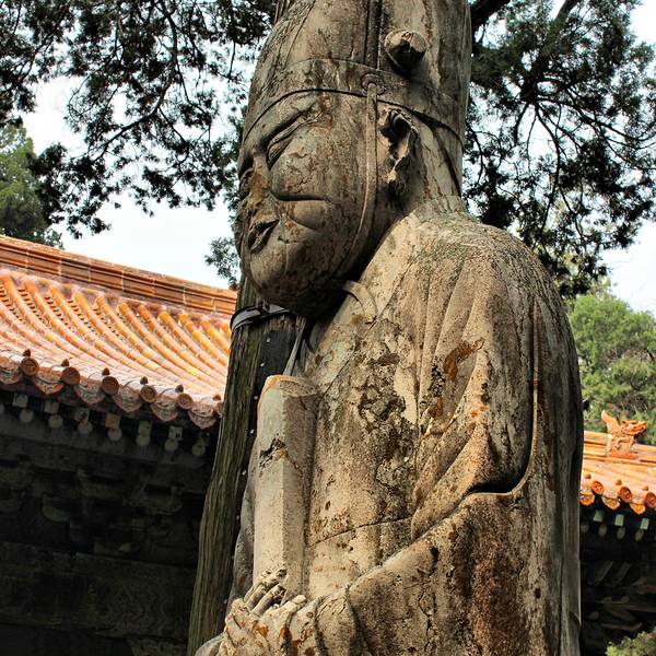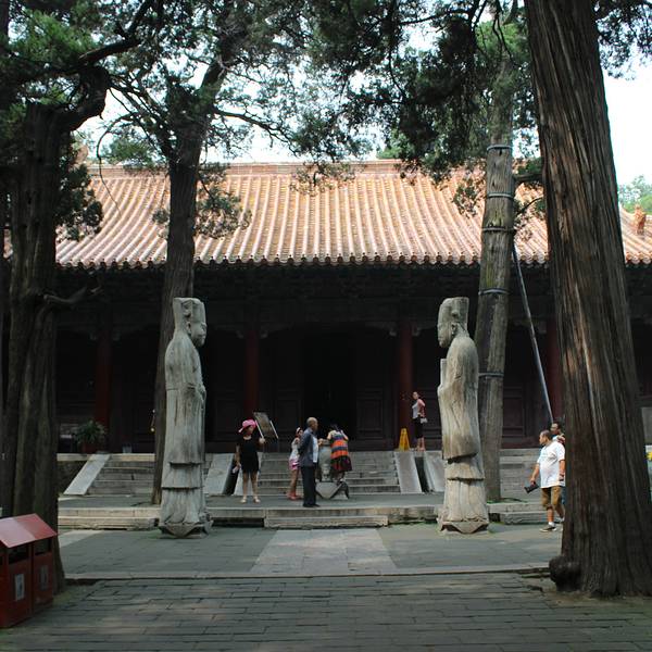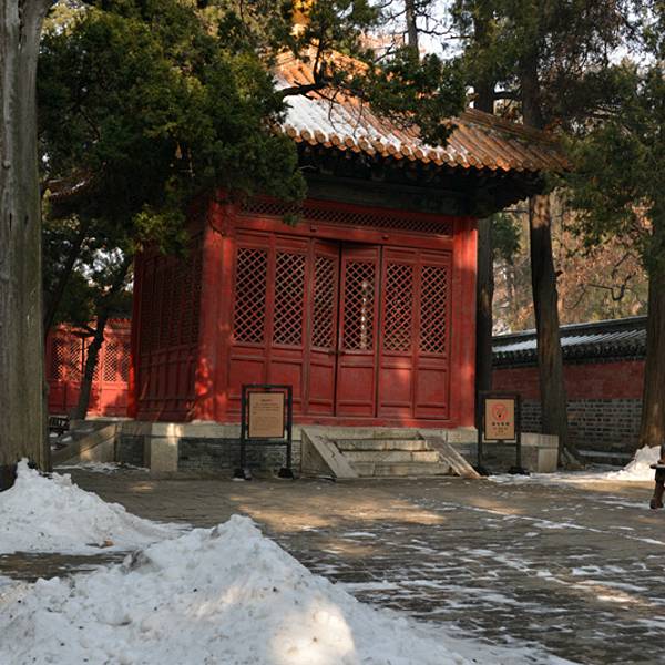 洙水桥北不远处为享殿,是祭孔时摆香坛的地方。殿前有翁仲、望柱、文豹和角端等石兽。