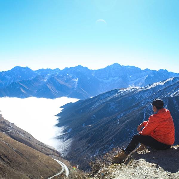 熊猫王国之巅,我坐在这里看云,看着我美丽动人的故乡。所以,只要天气晴朗,看见云海的机率都非常大翻过巴郎山,就是卧龙境内了,我快到家了!