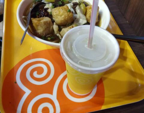 我们公司的饭堂,大杯豆浆必点,推荐原汤牛肉粉,卤菜粉都是我的最爱,