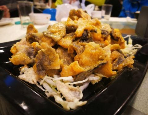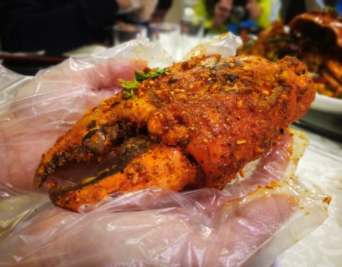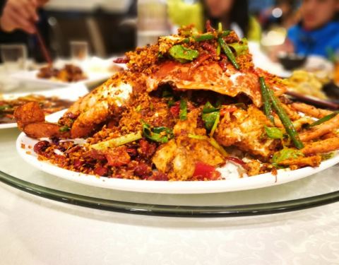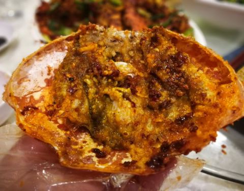 海鲜新鲜,货真价实。避风塘炒蟹用的是澳洲蟹,整一个蟹比成年人的脑袋还大,蟹肉鲜甜。冰镇鲍鱼是凉菜,爽脆。人多围着吃可以多享用几道美食,不过能坐10人的大桌只有三张,轮候的时间会难以估计。价格也是丰俭...