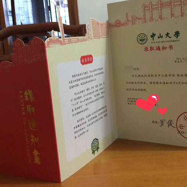 收到中山大学通知书这一刻,全家人整个绷紧心总算才放松。多年的努力总算有收获!总算拿到中山大学临床医学系的录取消息。感恩学校六年的培养!感恩所有老师们辛勤的教诲和付出!感恩同学们的一路相伴!!希望未来做一份有意义的工作,可以帮到更多的人。 展开