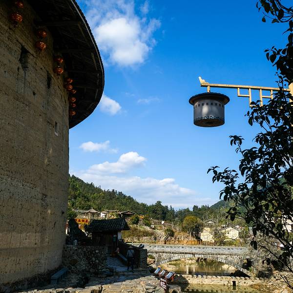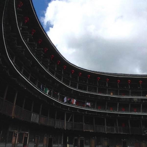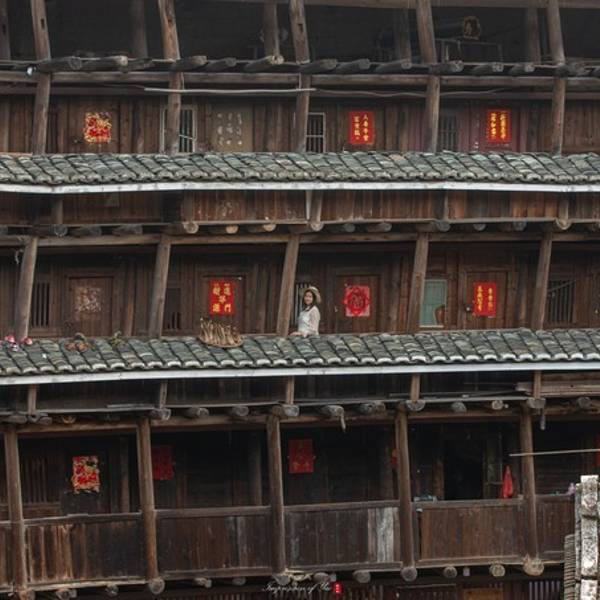但或许也只有他们的坚守才让我们能够见到如此璀璨的文明。这种感觉相较于在楼下时更加强烈。裕昌楼提起 漳州 ,第一个想起的便是土楼。人们可能更习惯称呼它为土楼,而我更喜欢它的另一个名字---神之围楼。其实我在《大鱼海棠》之前便知道土楼的存在,只是在看完这部电影后才有了想去现场感受的想法。椿为了报恩...提起 漳州 ,第一个想起的便是土楼。人们可能更习惯称呼它为土楼,而我更喜欢它的另一个名字---神之围楼。其实我在《大鱼海棠》之前便知道土楼的存在,只是在看完这部电影后才有了想去现场感受的想法。椿为了报恩而努力复活男孩“鲲”的执着,湫对椿执着的爱以及动画里蔚为壮观的建筑让我不禁好奇这神之围楼在现实中的模样。裕昌楼裕昌楼从 厦门 开往 南靖 的150公里路,有近一半是山路,山路蜿蜒间,这与我脑中的印象倒是颇为相近,神之围楼的世界应该存在于远离世俗纷扰的地方。随着车驶向大山深处,神之围楼的世界徐徐在眼前展开。到达 塔下 村已是中午,在民宿用过中饭,坐在露台上小憩一会儿。露台上的风铃偶尔随着风的摇动发出清脆悦耳的声响。