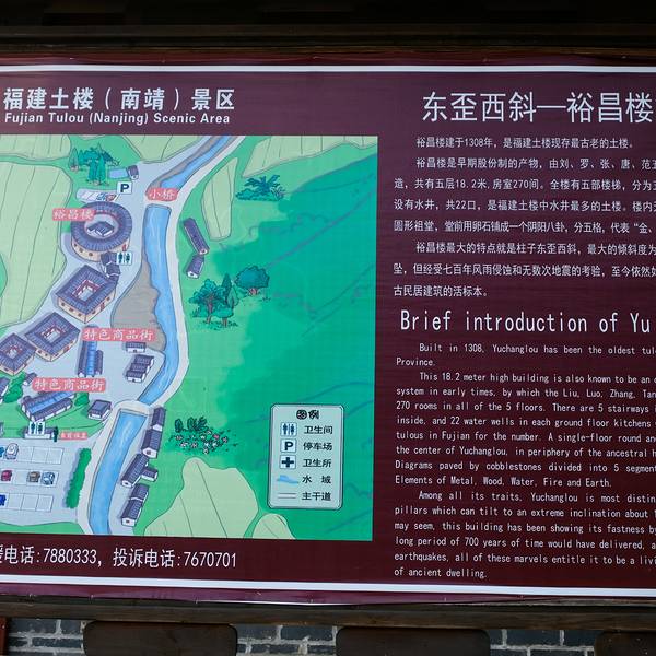 裕昌楼建于1368年,是现存最古老的土楼。裕昌楼最大的特点是柱子东倒西歪,最大的倾斜度为15°,看起来摇摇欲坠,但经受七百年侵蚀和...下午离开田螺坑土楼群,乘坐景区的观光车,五分钟的路程,13:45到达裕昌楼。
