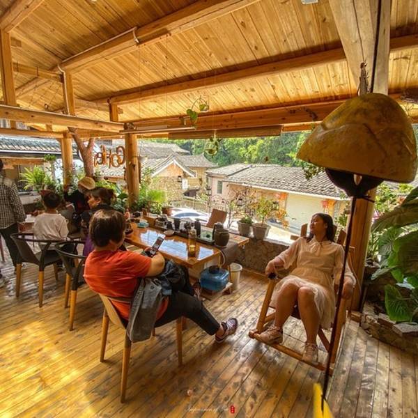书柜上放着很多书,随手拿起一本,是一名摄影师对于摄影历程的自白。闲暇间,随意的翻翻,伴随着偶尔清脆的风铃声,享受一个惬意的午后。塔下村塔下村午憩后,阳光已不像正午般炽烈,出发驾车前往第一站裕昌楼。在临行前,对于土楼做了一定的功课,虽然 南靖 土楼群田螺坑的四菜一汤更为人所熟知,但我似乎更期待裕昌楼一些。它更接近动画中神之围楼的样子,更宏达历史也更悠久。