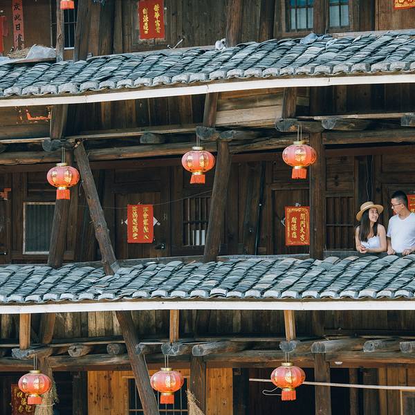 “开2小时路,就来看这样的土房子。”太太一脸坏笑的看着我,太太对于人文类景观并不是特别感冒。从外围远观,土楼确实朴素,土黄色的外墙经历了700多年的风霜,明显能够看出岁月的痕迹。门口贴着的对联及红底黑字与动画里的神之围楼如出一辙。深吸一口气,跨过门槛,走入椿与湫的世界---属于神的世界。裕昌楼裕昌楼裕昌楼踏入的第一眼,尽管已经在动画中感受过土楼的宏达,但现实的身临其境的感受完全不同。站在中央向四周望去,真的有千门万户的感觉。那一刻,我相信这就是《大鱼海棠》的世界。