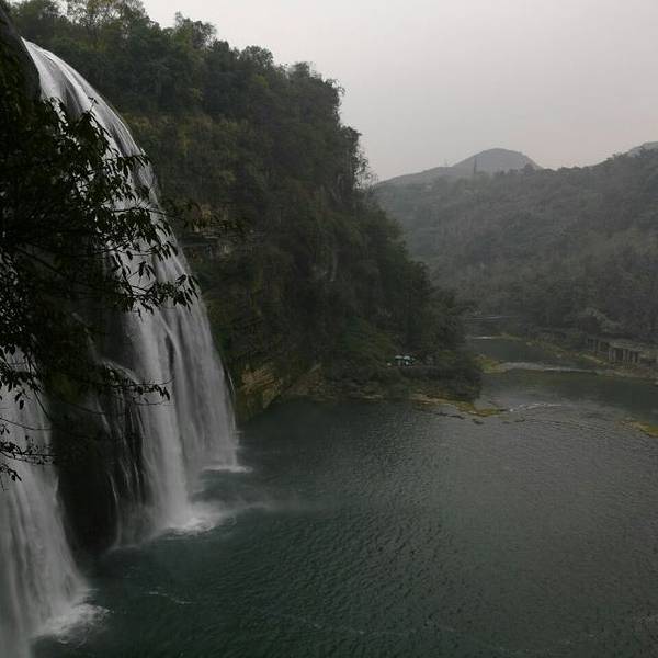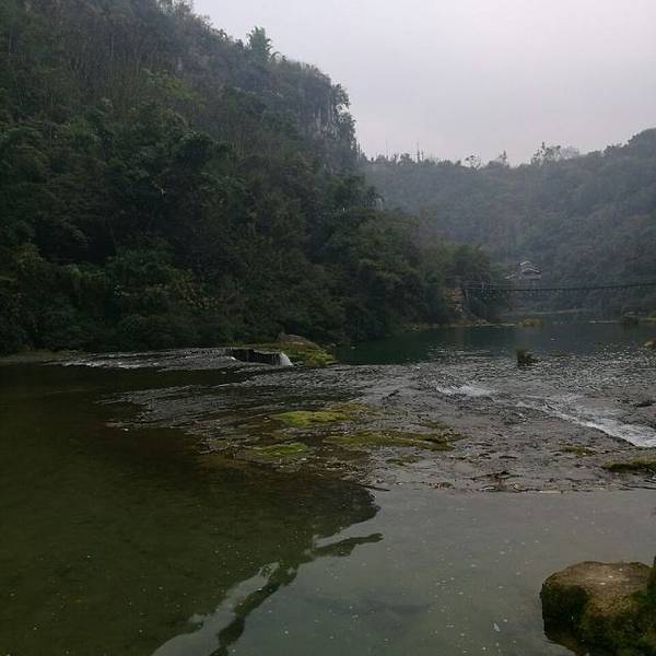 这里主要是看大瀑布,漂亮感觉一般般这里主要是看大瀑布,漂亮感觉一般般。顺着瀑布下的河边走着,从各个角度观察着,忽然看到瀑布对面的山顶上出现了涉外宾馆,估计山寨的。