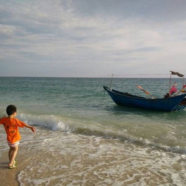 据说一直走就可以到达鳄鱼山公园,当时涨潮,过不去,只有等退潮过去。折回到滴水村附近的海滩,等待著名的日落,不过当时的天气并不是太好,与想象中的日落还有很大的差距,不过行者我已经很满足了。有几条村里的小狗在沙滩上玩耍,还有家长带过来的小朋友带这小水桶在沙滩上嬉笑着,找小鱼小蟹不亦乐乎,一幅和谐的黄昏之美。滴水丹屏也是看星空的不错的地方,我与小伙伴就在客栈的平台上欣赏美丽星空了。