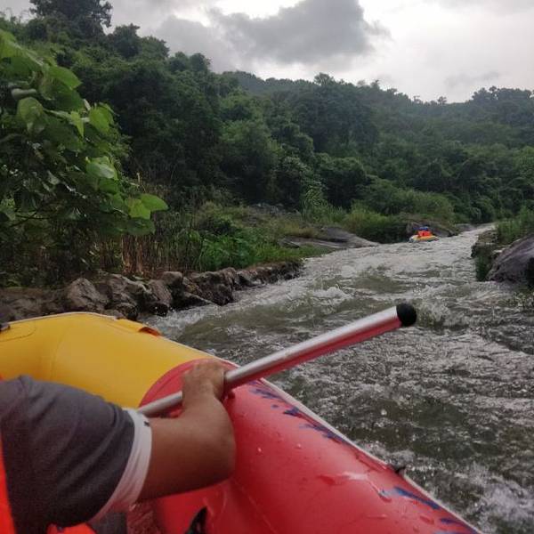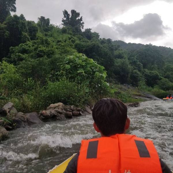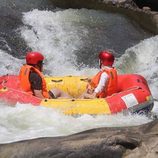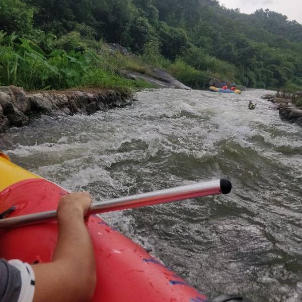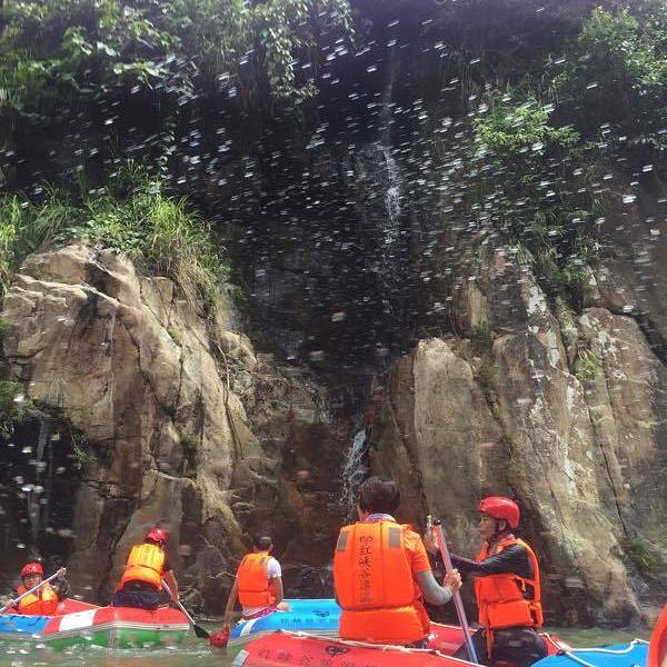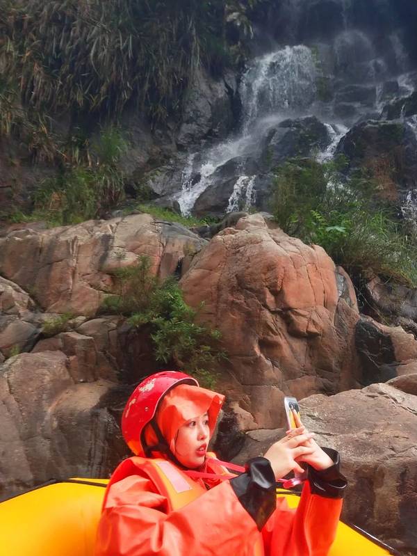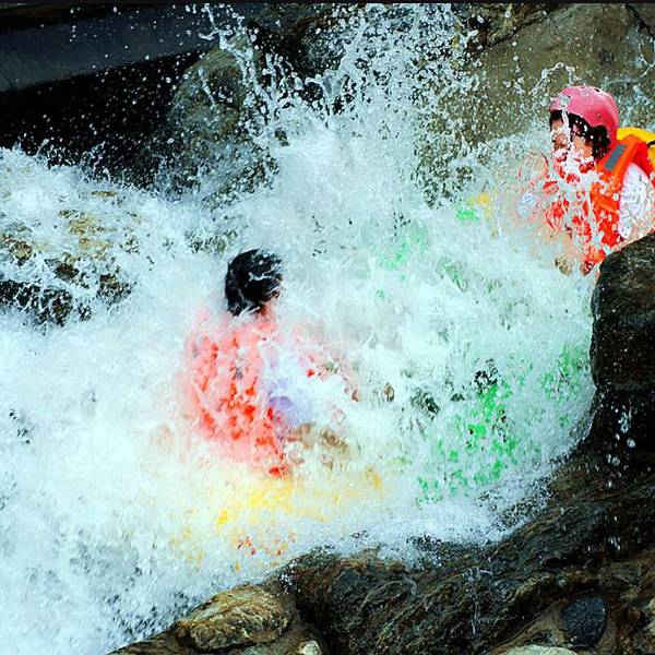 衣服全湿,选了一个不能漏水的旧船,一个大漂后,就像池塘一般 ,只好用安全帽舀水,不然等着翻船,吐血提醒,一定要选择新船,可以漏水的那种。