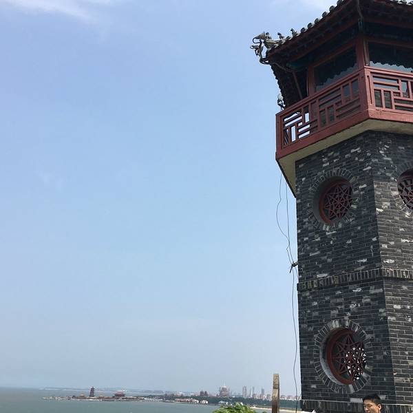 宾日楼也是蓬莱阁里看风景很不错的地方啊,在这里的楼上可以直接看到海,感觉这里看更加的高一点,风也很大配上美景非常的舒服啊。