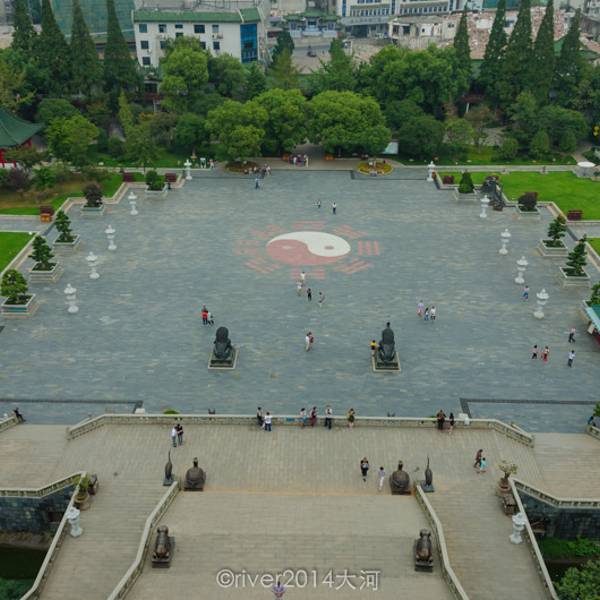 来的时候滕王阁内部正在升级改造,里边几乎都是空的,电梯也不能用,只好一层一层的爬到顶层,上边的观景台还是不错的,一侧是浩荡的江水,一侧是滕王阁景区的太极广场,还有沿着江边仿古街的大片古建筑,站在顶层上风吹过来特别凉快。