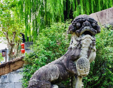 门口的石狮子非常的特别,造型很奇特,喜欢这种看着呆萌的小狮子,而且一看就觉得他经历了岁月的风吹雨晒,很有年代感。 这一对青石狮子,是清光绪年间的产物,造型生动,刻工精细,与隔壁的石拱桥浑然一体,很特...