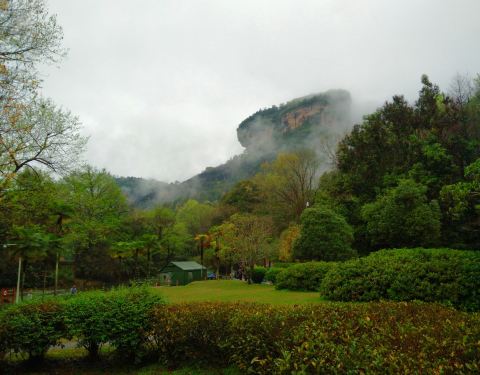 天柱峰在五曲,危石孤立耸峭,有裂隙隐约而下,似一尊倒扣的酒坛,又名酒坛峰,是个有趣的地方 2018-04-07 03:48
