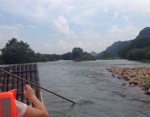 云河漂流,凉风徐徐,坐着竹排顺水而下,喝着大红袍,无比惬意