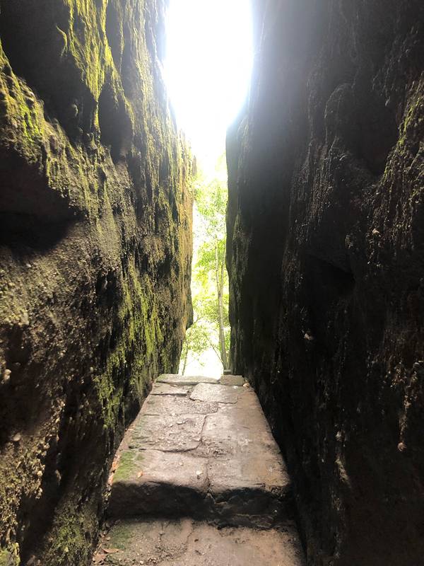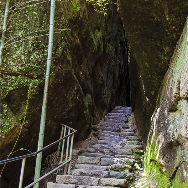 这里非常的湿滑,有些地方只能容一人侧身通过,空间很小,十分的惊险,老年人不大适合武夷山的一线天是一处狭小的山洞,两块巨石中间的缝隙。抬头向上看,只有一条缝可以看到天空。这里非常的湿滑,有些地方只能容一人侧身通过,空间很小,十分的惊险,老年人不大适合。