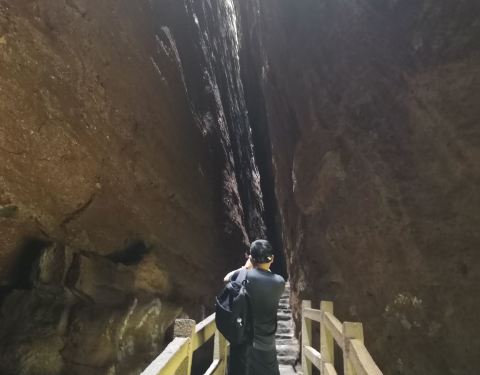 景点特色:基本上一线天就是2块岩石中的一个缝细, 基本上是体验大自然的奇妙, 竟然只靠地壳运动, 能造出来这种奇特的地形。 刚开始的时候还很宽(差不多1m宽), 但是路会越走越窄(最窄就30cm), 而且因为路线是单行道,所以建议如果太胖的人, 建议不要进去, 要不然进去之后只能往前, 不能退后。 建议带各手电筒进去,因为里面没有照明设备, 再加上走到最底端的时候, 因为缝细很小 ,所以基本上没有阳光能进来。 展开