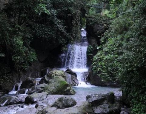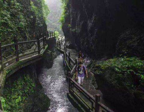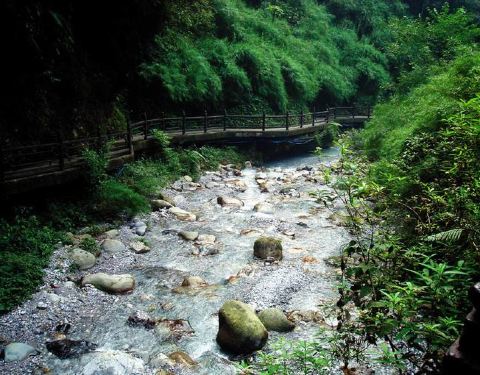 沿着溪边的栈道从清音阁步行约20分钟,或由生态猴区沿栈道步行约15分钟可到。