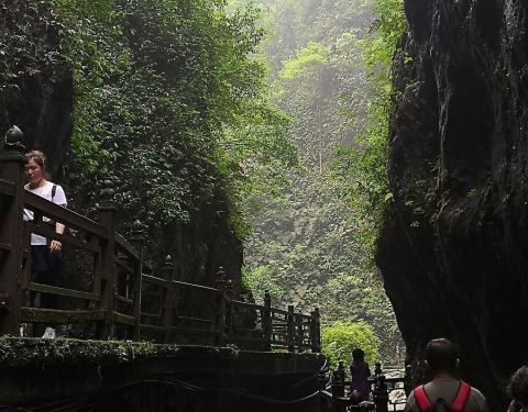 沿黑龙江的栈道,路分两边,一上行,一下行。说是一线天,也就是那么个意思,豁子还是挺大的峨眉山中山区的一处景,在摩崖石刻和猴区中间。沿黑龙江的栈道,路分两边,一上行,一下行。说是一线天,也就是那么个意思,豁子还是挺大的。