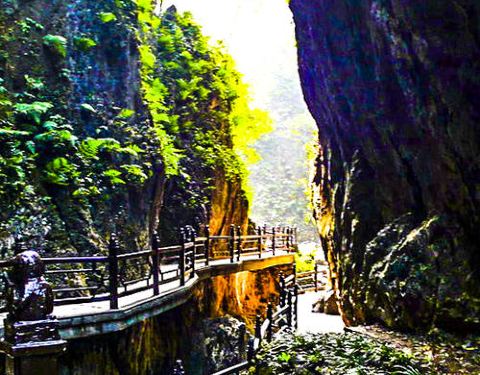 的极深处,有一峡谷,名白云峡,峡外开阔明朗,峡内险壮清凉,峡内外温差较大,感受强烈峨眉山一线天,又名白云峡,位于在牛心岭下,从清音阁至一线天,沿着黑龙江西行上山,山径在江两岸迂回曲折,行至"山重水复疑无路"的极深处,有一峡谷,名白云峡,峡外开阔明朗,峡内险壮清凉,峡内外温差较大,...峨眉山一线天,又名白云峡,位于在牛心岭下,从清音阁至一线天,沿着黑龙江西行上山,山径在江两岸迂回曲折,行至"山重水复疑无路"的极深处,有一峡谷,名白云峡,峡外开阔明朗,峡内险壮清凉,峡内外温差较大,感受强烈。进入峡谷昂首望去,两面险崖绝壁,斜插云空,透过疏藤密蔓、枝梢叶尖,露出蓝天一线,高200余米,宽约6米,最窄处仅3米,只容两人侧身而过,此景即为"一线天"。 展开