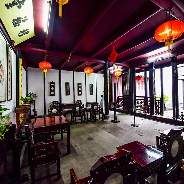 西园像是一座小型的江南园林,走在院内,有假山,亭台,池水,长廊,一切都是古色古香,一切都小巧玲珑,显示出江南的灵秀。西园由东西两个院子构成,院子中间有一条窄小的巷子,而西园在巷子之上修建了过街楼连接两座院子。西园内最大的看点是建筑本身,这是江南水乡特色的建筑风格,粉墙黛瓦,窗户都是木制的,看上去饱经沧桑,但是雕刻精美,上下楼的楼梯也是窄窄的很陡峭。目前在西园内有一些专门的展览,如各种各样的扇子,还有印章等。 展开