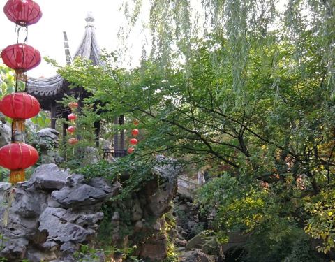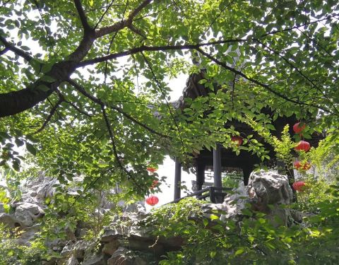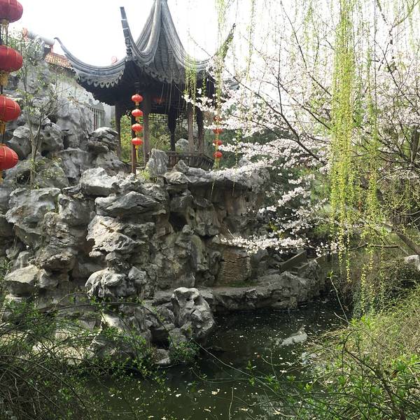 园内布置的很精致,树木、花草、假山、亭池等江南园林标配的陈设一应俱全。最爱的是假山上的白皮松,很高很壮,看样子有些年岁了,风来时稷稷有声,很惬意~