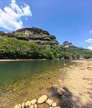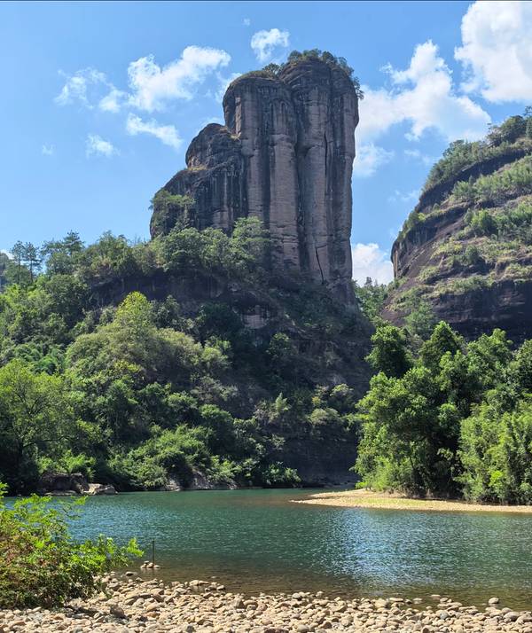 玉女峰是武夷山具有代表性美景之一,只能在河边欣赏,水很清澈,很多鱼,远处可看到玉女峰全景玉女峰是武夷山具有代表性美景之一,只能在河边欣赏,水很清澈,很多鱼,远处可看到玉女峰全景。据说西游记的白龙马那集是在这取景的。