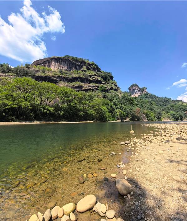 亲水体验满分,孩子超爱。玉女峰脚下的浴香潭与九曲溪浅滩区域水浅、流缓、安全,是武夷山少有的官方允许近距离亲水的区域之一。浅滩处水位仅到脚踝,水底平坦,孩子可以放心踩水、玩沙、捞小鱼、捡鹅卵石,天然“水上小乐园”让孩子流连忘返。夏日清凉、冬日静谧,不管哪个季节来,都能让孩子近距离接触山水,释放天性,比室内游乐场更自然、更治愈、更有意义。
