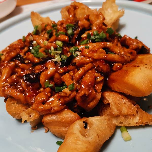 - 油条吃上去的口感非常的香脆 肉丝酱香味浓 同样是很大一份 非常的下饭 大家都特别喜欢里面的脆油...