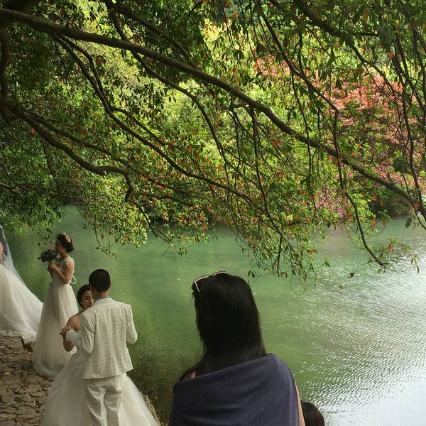 不过当我们走过人迹寥寥的九溪时,发现九溪烟树已经“人满为患”,溪边拍照留念的大有人在,即使天气不佳,稍微好点的取景点也要排队等候。桥上水边好几对拍婚纱照的新人,更增添了一些拥堵。