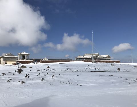 北台顶除了龙王庙,其他的建筑就像武侠片中,位于雪山顶上的隐世山庄,一座四四方方的院子,静静的坐...北台的建筑是新修建的,北台顶除了龙王庙,其他的建筑就像武侠片中,位于雪山顶上的隐世山庄,一座四四方方的院子,静静的坐落在华北之巅。