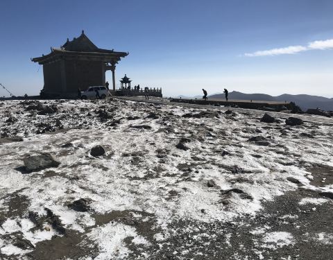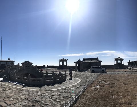 早晨6:00由酒店老板帮约的司机开车送我们前往北台,07:00再北台山下换车(设有路障不让其他车上)继续前往台顶。华北屋脊的牌坊北台名叶斗峰,海拔3061米,五台最高,也是华北地区的最高点,有“华北屋脊”之称,其台“顶平广,圆周四里,其下仰视,巅摩斗杓,故以为名。”康熙皇帝赋诗赞曰:“绝磴摩群峭,高寒逼斗宫。钟鸣千嶂外,人语九霄中。朔雪晴犹积,春冰暖未融。凭虚看陆海,此地即方蓬。”清晨的五台山寒冷的厉害,同行的居然有人冻哭了....赶紧让她搭车下山。山上的草全部被冰凌覆盖这已经不是霜了,是冰凌去往中台的道路风太大了,飞的都是小石子,打在脸上啪啪的疼 展开