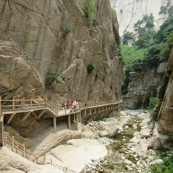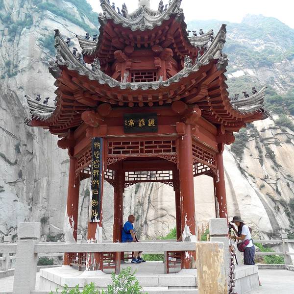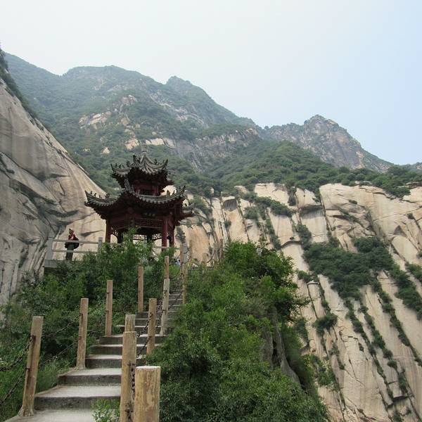 到了亭子这里就能感受到阵阵凉风,瞬间就把刚才登山的那一身热气吹走了。两个景点一天足够了。长长的栈道华山门票包含仙峪和西岳庙,景区免费摆渡车可达。两个景点一天足够了。时间充裕的话非常值得一去,就当是为登华山热身吧。
